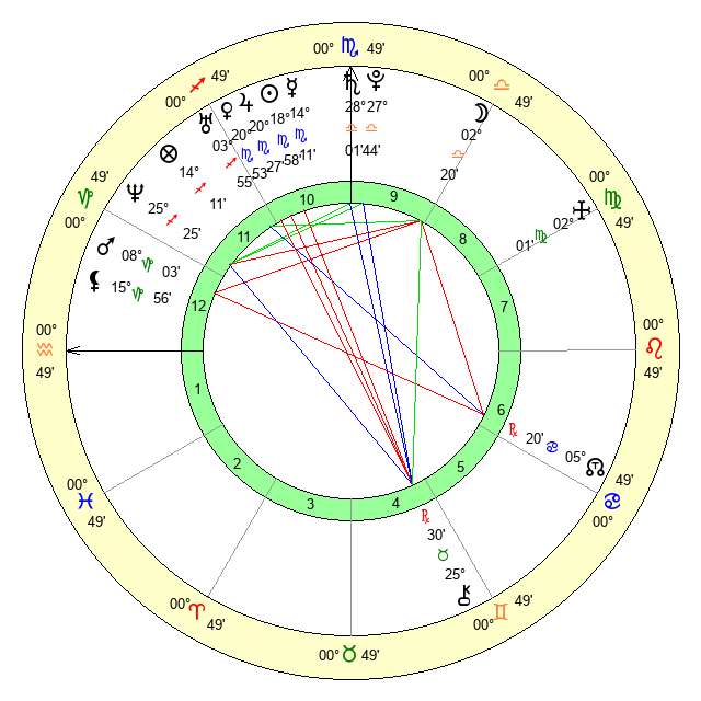 | Saturn | 28 Libra 22 | 25 Pisces 17 | 2 Scorpio 42 |