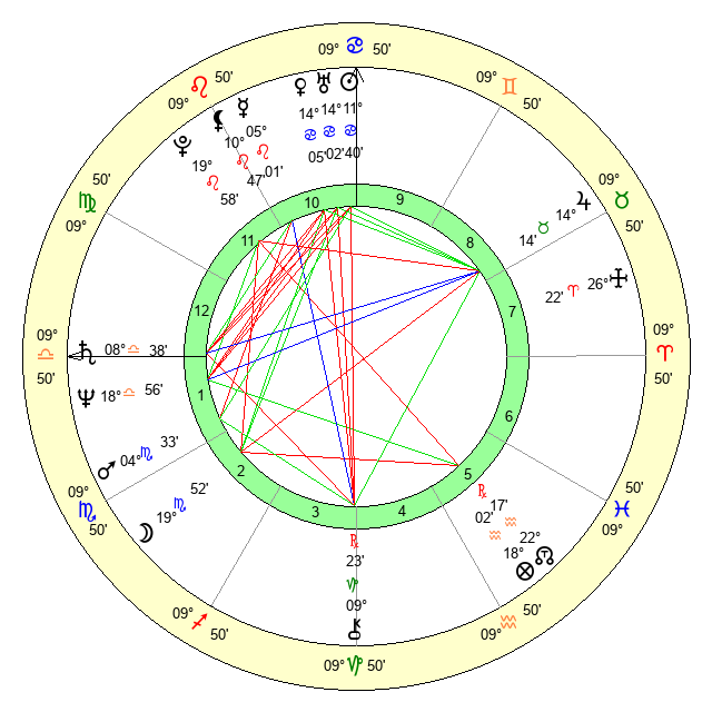 | Sun | 11 Cancer 40 | 12 Cancer 1 | 21 Virgo 48 |