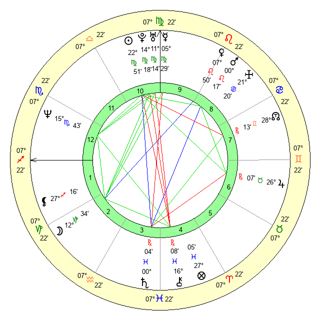 | Sun | 22 Virgo 52 | 23 Virgo 6 | 23 Scorpio 22 |