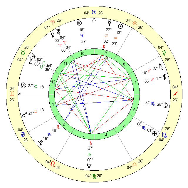 | Moon | 25 Scorpio 32 | 9 Aries 21 | 24 Taurus 50 |