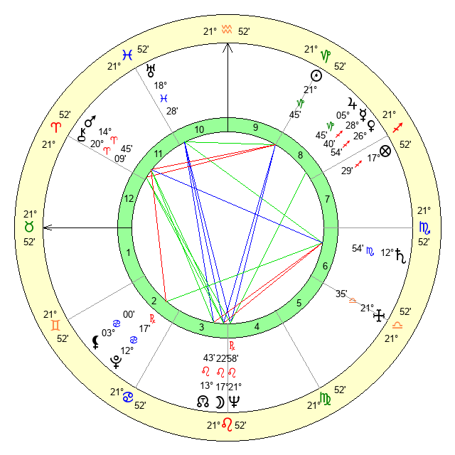 | Moon | 17 Leo 25 | 3 Cancer 51 | 23 Aries 54 |