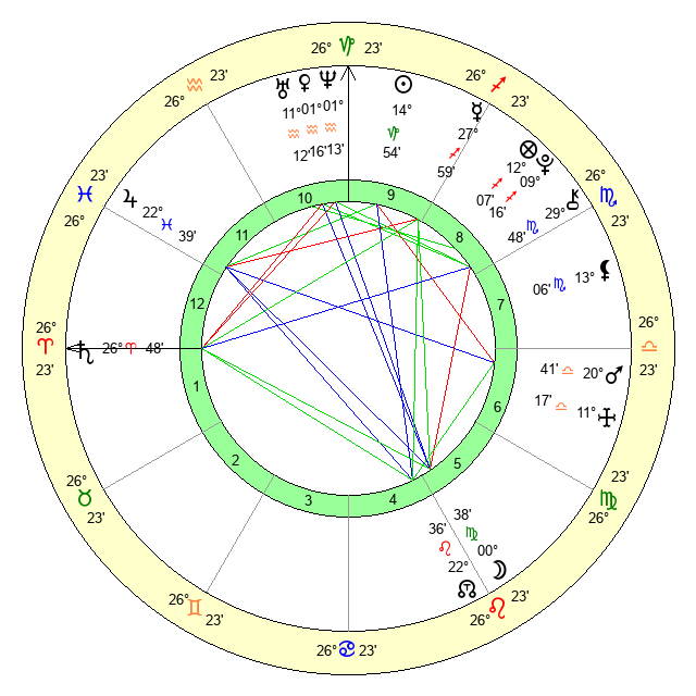 | Moon | 0 Virgo 34 | 16 Leo 8 | 25 Leo 11 |