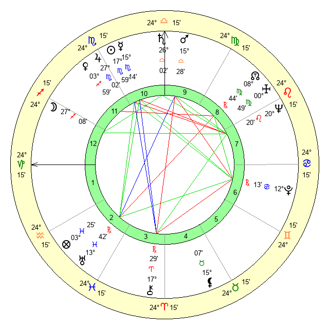 | Saturn | 26 Libra 36 | 25 Pisces 18 | 2 Scorpio 51 |