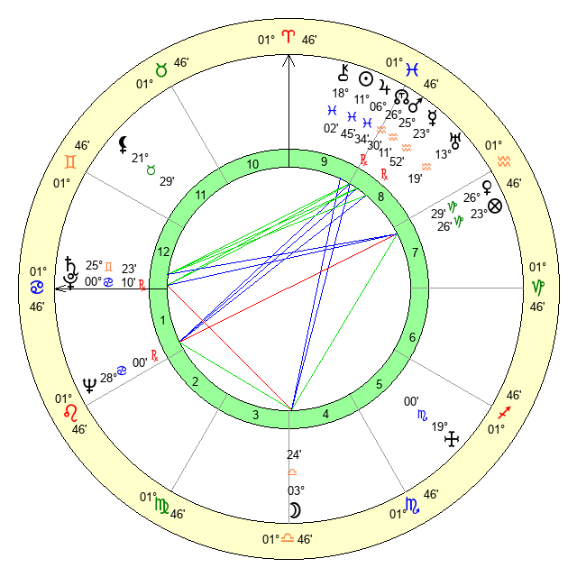 | Jupiter | 6 Pisces 21 | 12 Gemini 28 | 26 Pisces 59 |