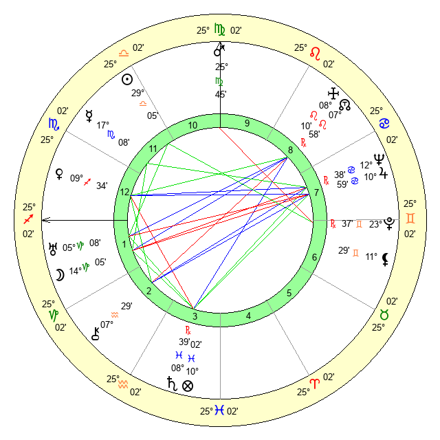 | Mars | 25 Virgo 46 | 21 Scorpio 23 | 8 Sagittarius 5 |