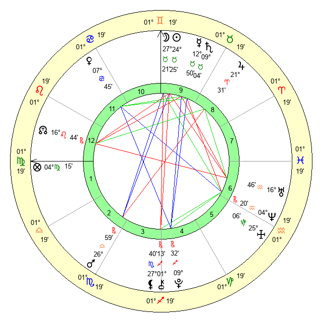 | Moon | 27 Taurus 21 | 28 Sagittarius 30 | 5 Taurus 40 |