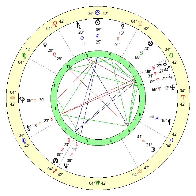 | Mars | 27 Aries 32 | 5 Virgo 52 | 1 Gemini 8 |
