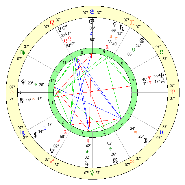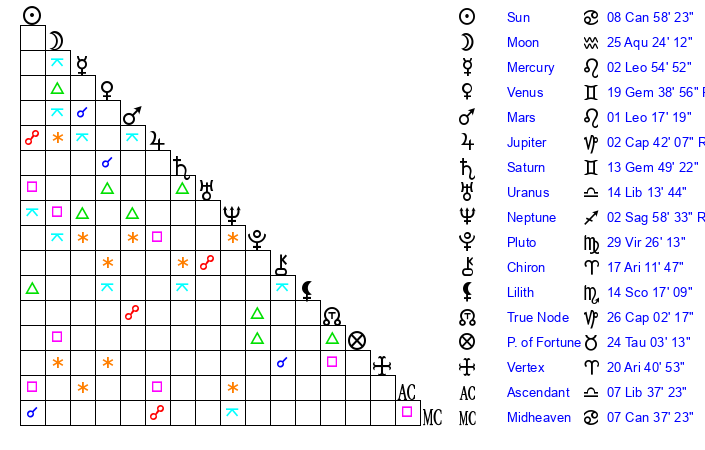 | Moon | 25 Aquarius 25 | 15 Virgo 36 | 4 Aquarius 0 |