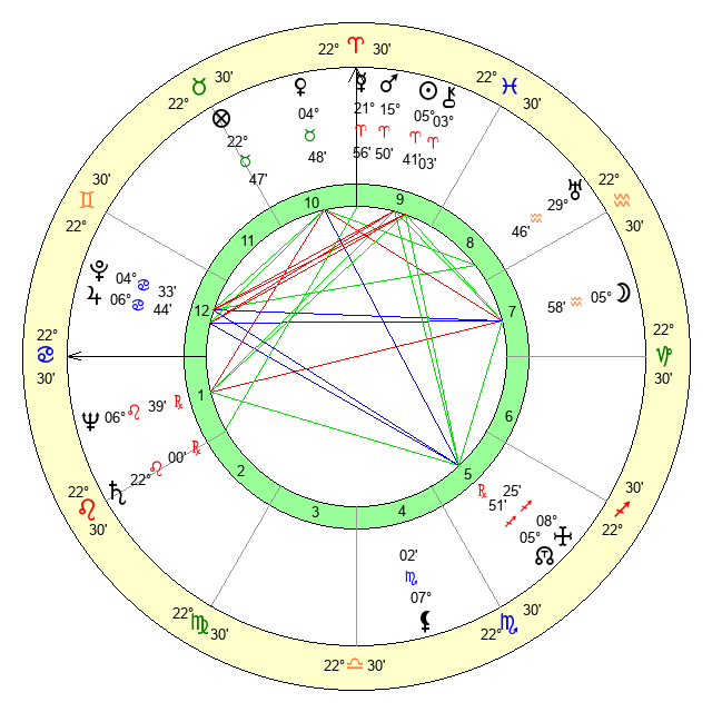 | Sun | 5 Aries 41 | 6 Aries 59 | 18 Cancer 2 |