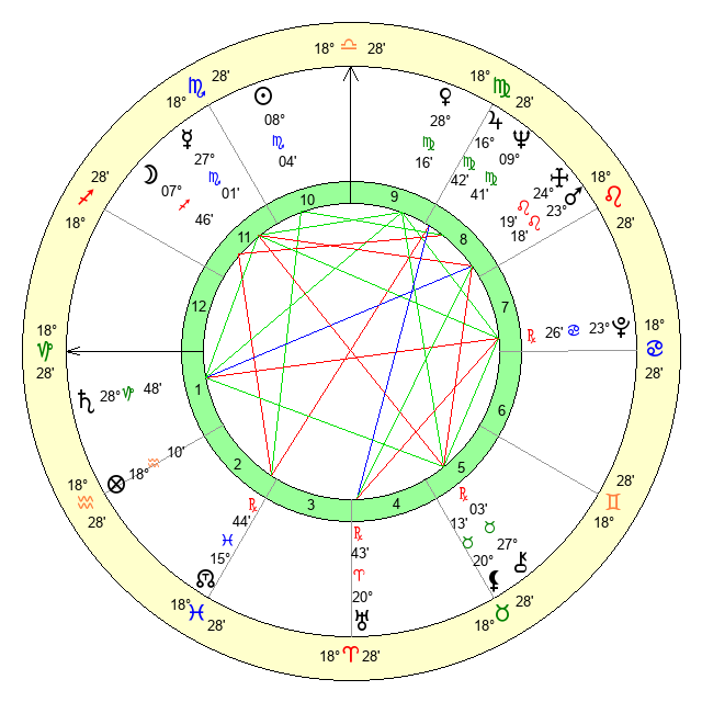 | Mars | 23 Leo 18 | 27 Scorpio 16 | 19 Virgo 23 |
