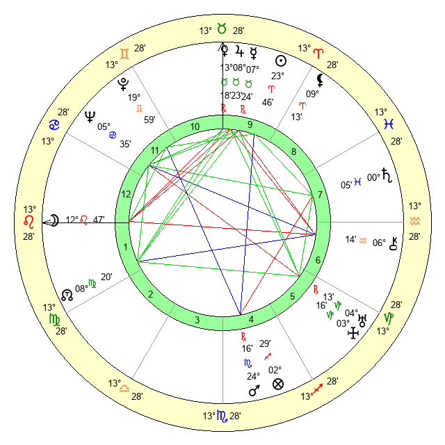 | Sun | 23 Aries 47 | 24 Aries 42 | 19 Leo 0 |