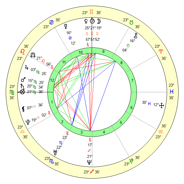 | Venus | 25 Gemini 58 | 6 Taurus 35 | 23 Gemini 6 |