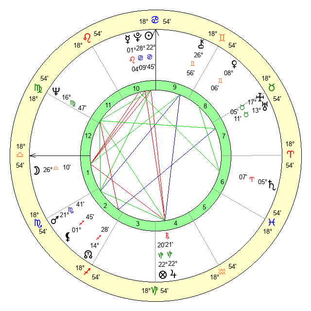 | Sun | 22 Cancer 45 | 23 Cancer 27 | 17 Libra 57 |