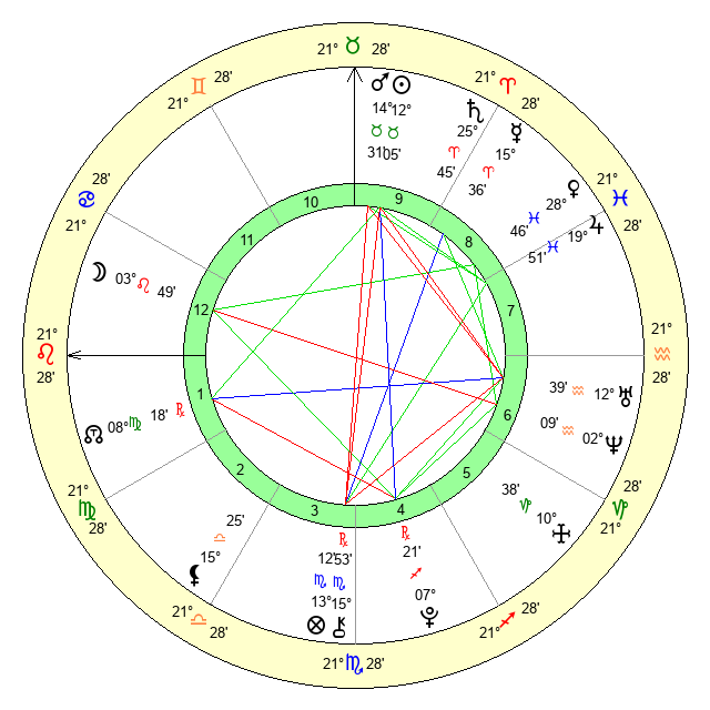 | Mars | 14 Taurus 32 | 6 Leo 23 | 3 Gemini 57 |