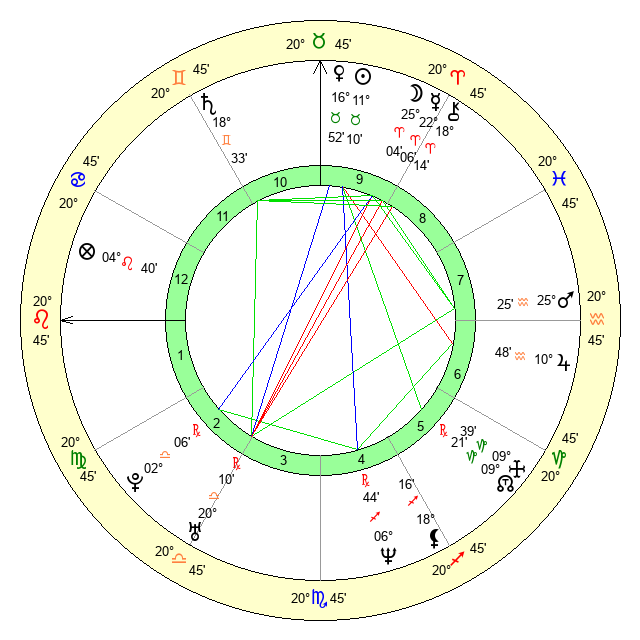 | Sun | 11 Taurus 10 | 11 Taurus 34 | 1 Cancer 6 |