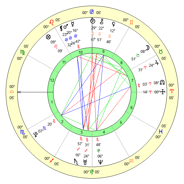 Sun | 29 Gemini 47 | 0 Cancer 34 | 6 Leo 3 |