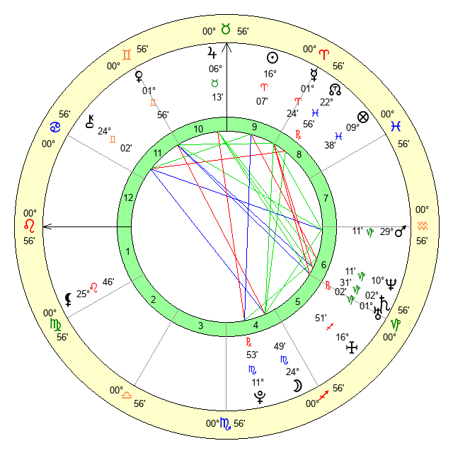 Moon | 24 Scorpio 52 | 23 Cancer 47 | 10 Aries 24 |