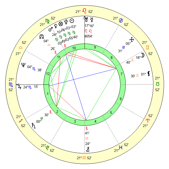 | Venus | 10 Virgo 49 | 2 Leo 25 | 22 Virgo 18 |
