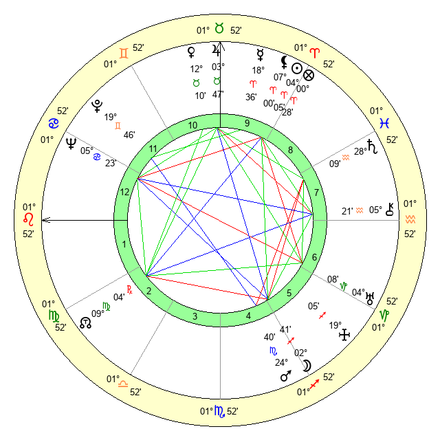 | Sun | 4 Aries 5 | 5 Aries 0 | 29 Cancer 51 |