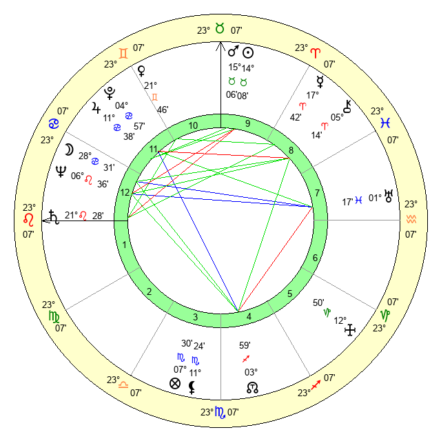 | Mars | 15 Taurus 6 | 7 Leo 47 | 27 Cancer 42 |