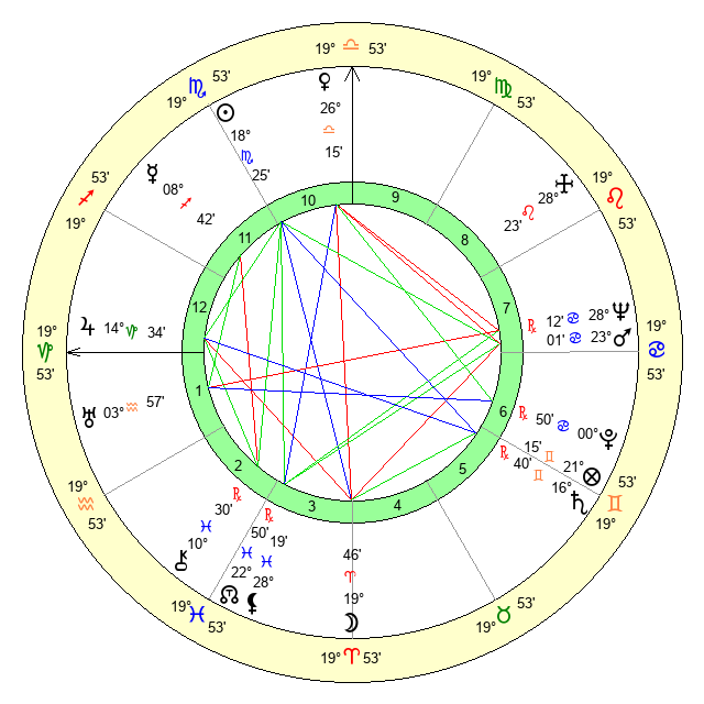 | Venus | 26 Libra 16 | 5 Scorpio 36 | 16 Pisces 47 |