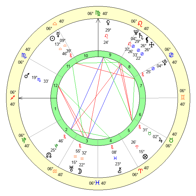 Venus | 29 Leo 25 | 17 Scorpio 23 | 9 Capricorn 54 |