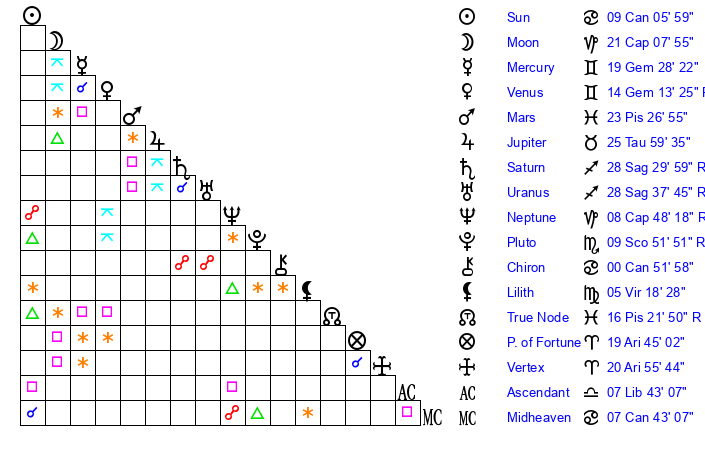 Pluto | 9 Scorpio 51 | 3 Aquarius 8 | 9 Scorpio 50 |