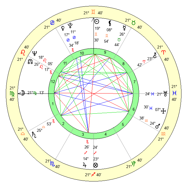 | Moon | 21 Virgo 10 | 13 Sagittarius 11 | 10 Gemini 51 |