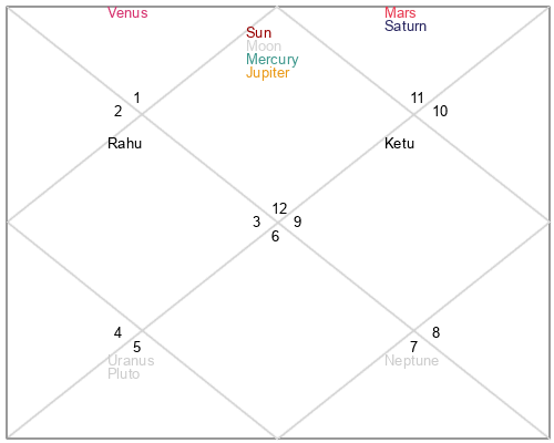 Note: This birth chart is calculated using the date and place of birth, with the time set to noon (12:00 PM) local time. While this provides accurate planetary positions for most celestial bodies, the Ascendant (Rising Sign) and house cusps are not calculated since they require precise birth time. For a complete astrological analysis including houses and rising sign, please provide the exact birth time.