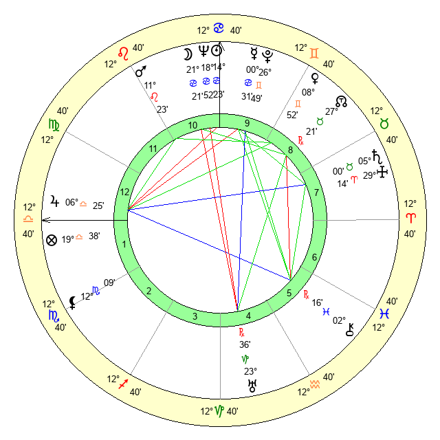 | Moon | 21 Cancer 22 | 5 Sagittarius 56 | 6 Libra 46 |