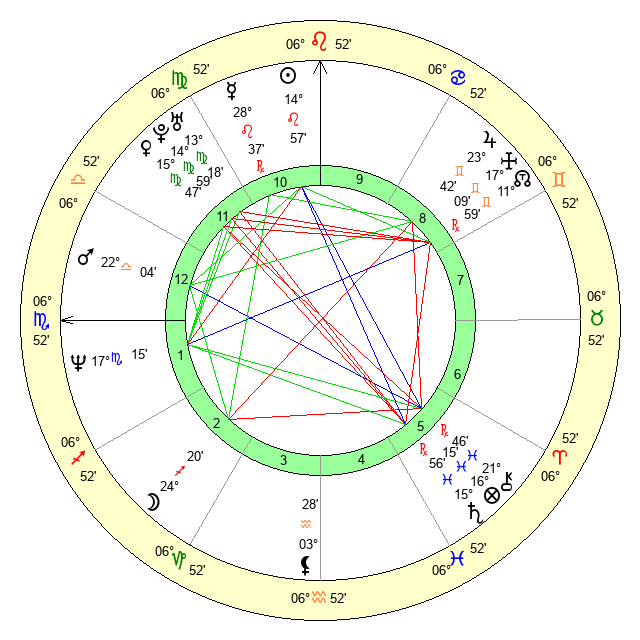 Mercury | 28 Leo 38 | 4 Leo 56 | 19 Libra 59 |
