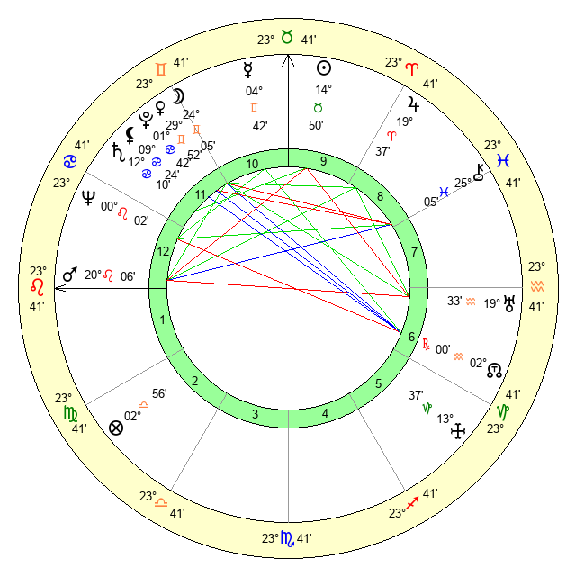 | Moon | 24 Gemini 3 | 28 Leo 42 | 23 Gemini 30 |