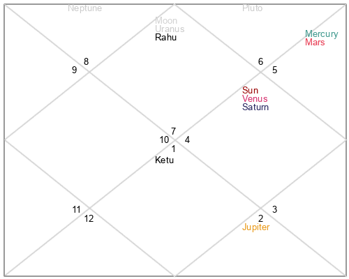 | Rahu | 7 Scorpio 53 | 20 Pisces 10 | 5 Scorpio 17 |