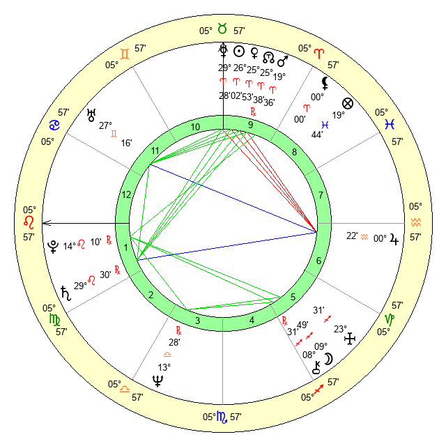 | Venus | 25 Aries 54 | 24 Pisces 51 | 29 Cancer 16 |