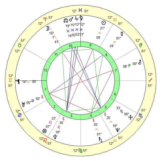 | Jupiter | 13 Pisces 16 | 11 Gemini 20 | 0 Aries 47 |
