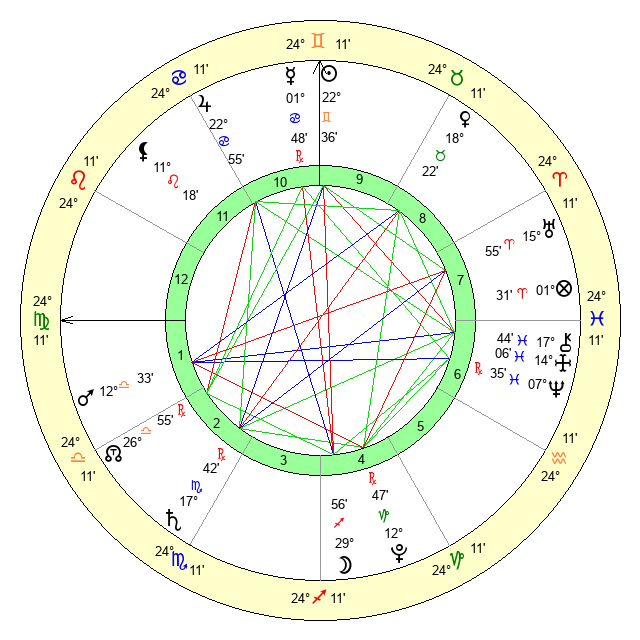| Mars | 12 Libra 33 | 27 Leo 58 | 16 Libra 0 |