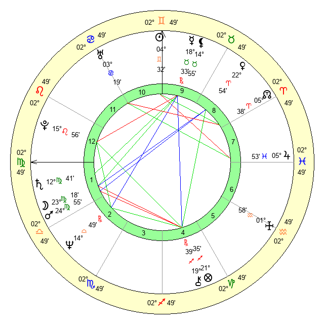 | Mars | 24 Virgo 55 | 18 Leo 6 | 29 Libra 12 |