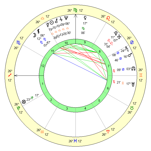 | Venus | 17 Virgo 7 | 23 Virgo 35 | 27 Sagittarius 1 |