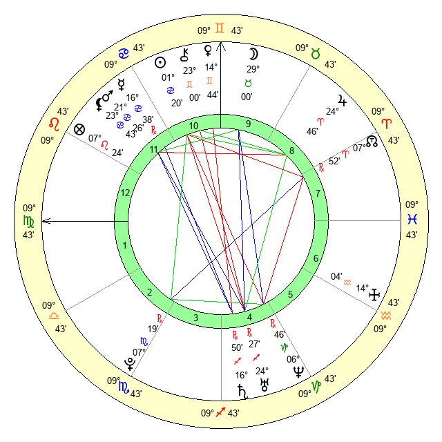 | Venus | 14 Gemini 45 | 17 Taurus 43 | 1 Leo 18 |