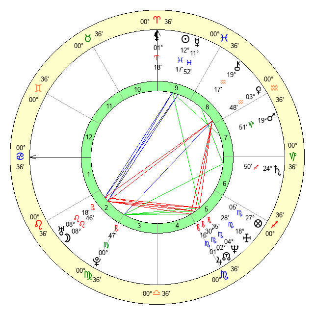 | Pluto | 0 Virgo 46 | 2 Aquarius 57 | 29 Leo 46 |