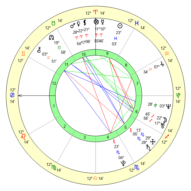 | Mars | 28 Aries 55 | 18 Cancer 47 | 27 Taurus 27 |
