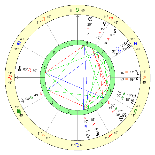 | Mars | 17 Pisces 32 | 0 Leo 38 | 12 Aries 49 |