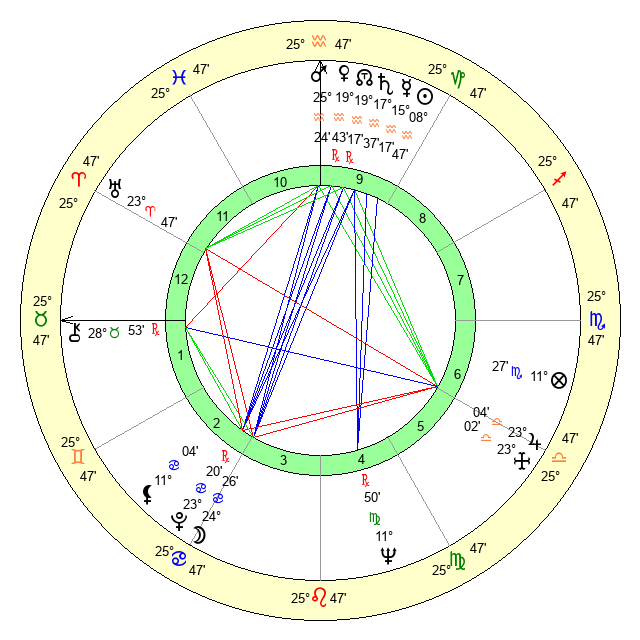 | Mars | 25 Aquarius 25 | 21 Cancer 17 | 5 Taurus 45 |