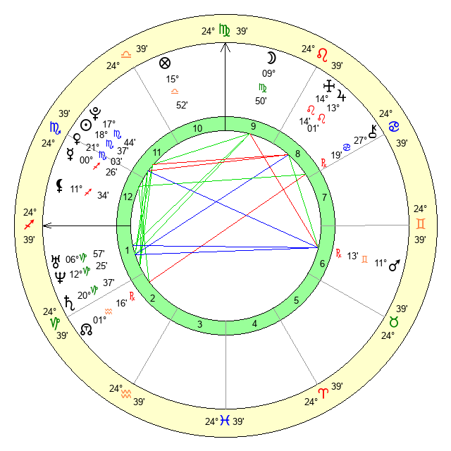 | Moon | 9 Virgo 45 | 7 Leo 32 | 14 Sagittarius 25 |