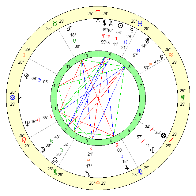 | Mars | 18 Taurus 30 | 23 Cancer 6 | 26 Cancer 22 |