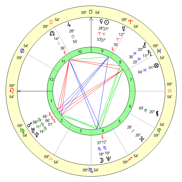 Venus | 28 Aries 54 | 25 Pisces 4 | 12 Cancer 40 |