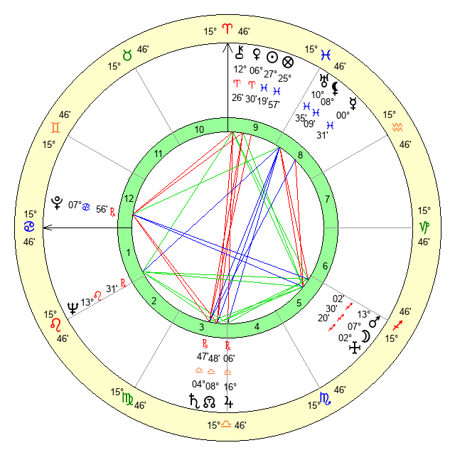 | Jupiter | 15 Libra 47 | 14 Gemini 6 | 9 Libra 31 |