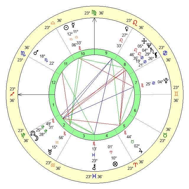 | Venus | 27 Leo 33 | 19 Virgo 52 | 9 Capricorn 3 |