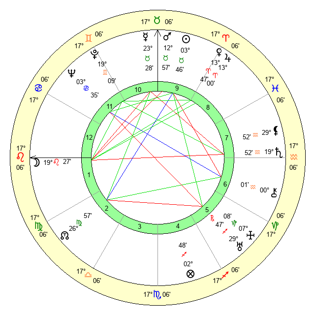 | Moon | 19 Leo 36 | 16 Pisces 44 | 0 Aquarius 42 |