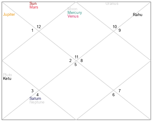 | Jupiter | 6 Taurus 48 | 14 Gemini 29 | 1 Gemini 23 |